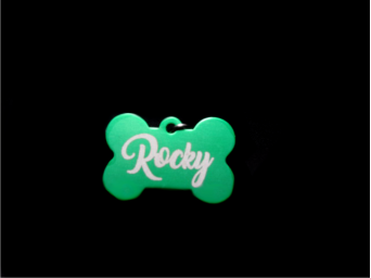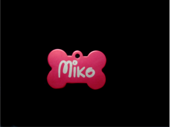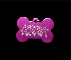Chapa identificativa con forma de hueso de aluminio anodizado. Grabado a dos caras (Nombre + número de teléfono). Diferentes opciones de fuentes a elegir. Varias opciones de colores: Negro/Rojo/Verde/Azul/Azul Marino/Rosa/Rosa pardo/Morado/Dorado