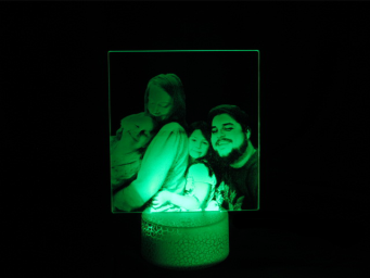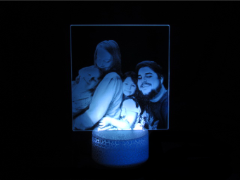 Lampara led RGB con foto grabada personalizada. Tu foto/diseño iluminado gracias al proceso de grabado láser. Varios modos de iluminación. Funciona a pilas o cable USB (las dos opciones) Incluye cable USB. Disponible en negro/blanco quebrado.